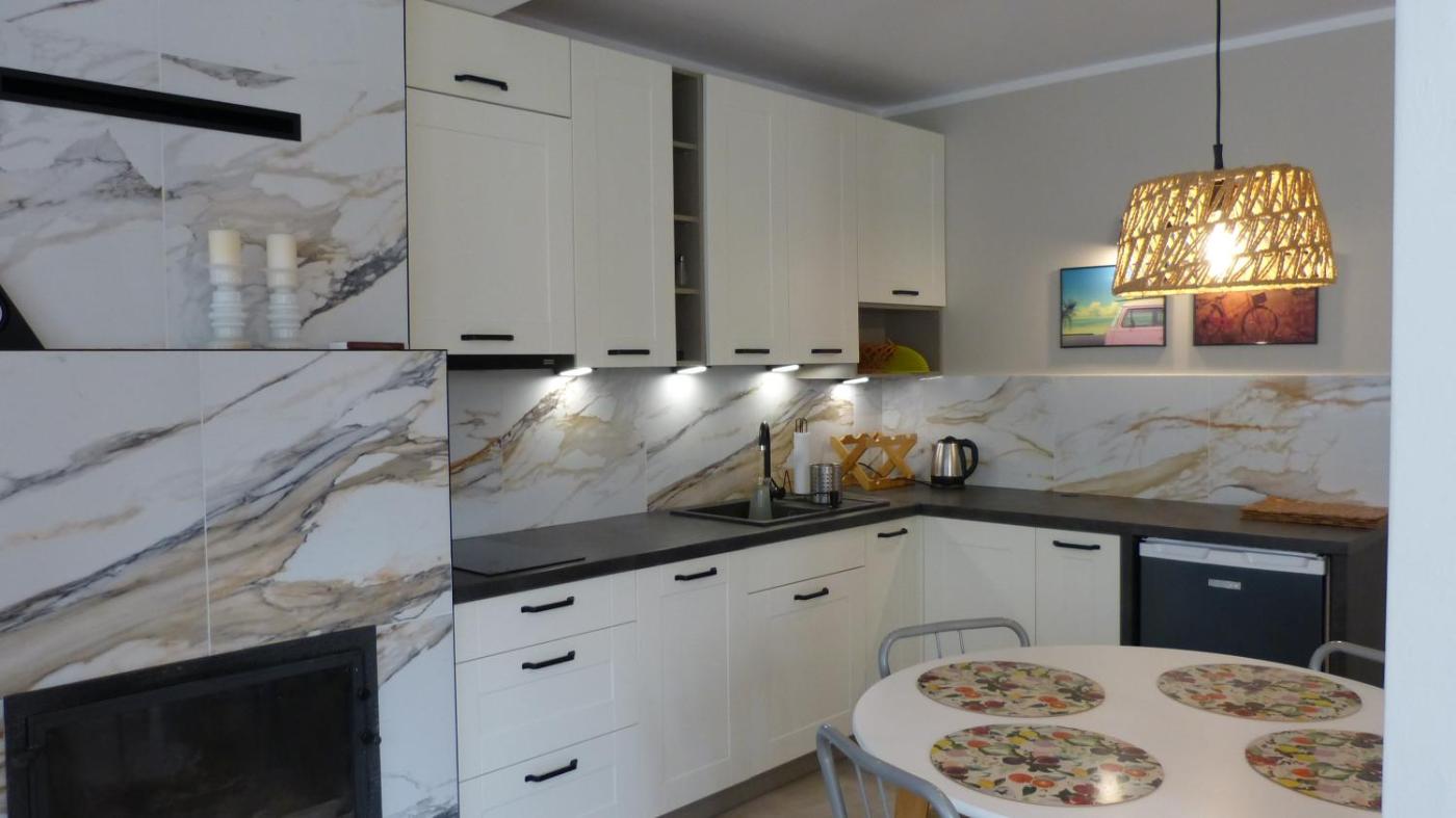 Dom z 2 sypialniami. The fireplace is a top feature of this holiday home. Boasting a private entrance, this holiday home comes with 1 living room, 2 separate bedrooms and 1 bathroom with a shower and a hairdryer. Guests will find a stovetop, a refrigerator, a dishwasher and kitchenware in the well-equipped kitchen. The holiday home also includes a barbecue. Featuring a terrace with garden views, this holiday home also features a washing machine and a flat-screen TV. The unit has 5 beds. Dom wakacyjny - 5 osobowy. Powierzchnia pokoju ok.: 75 mkw.