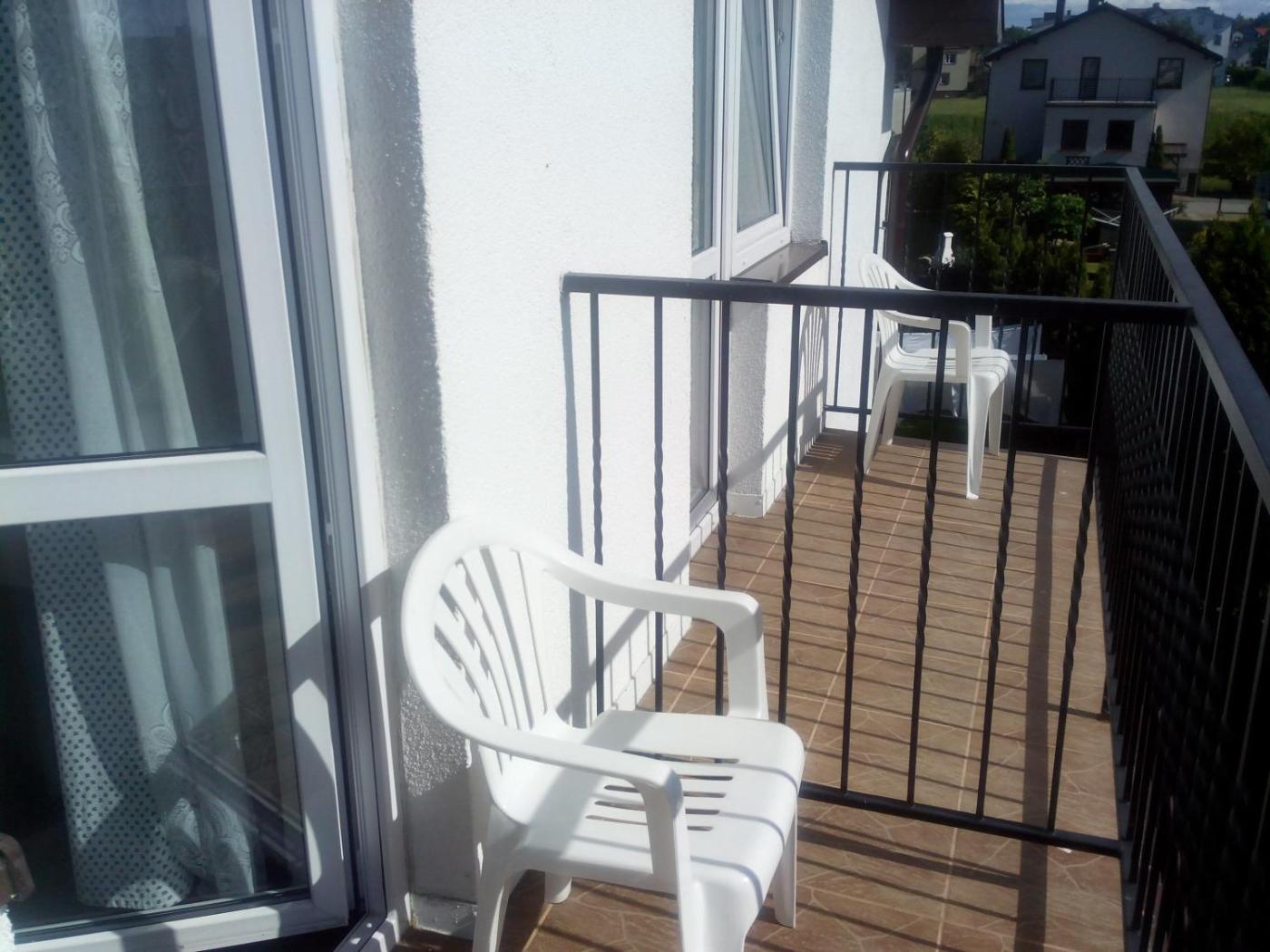Pokój Czteroosobowy z balkonem. The quadruple room offers a private entrance, a tea and coffee maker, a balcony with garden views as well as a private bathroom featuring a shower. The unit offers 3 beds. Pokój Czteroosobowy - 4 osobowy. Powierzchnia pokoju ok.: 18 mkw. ;