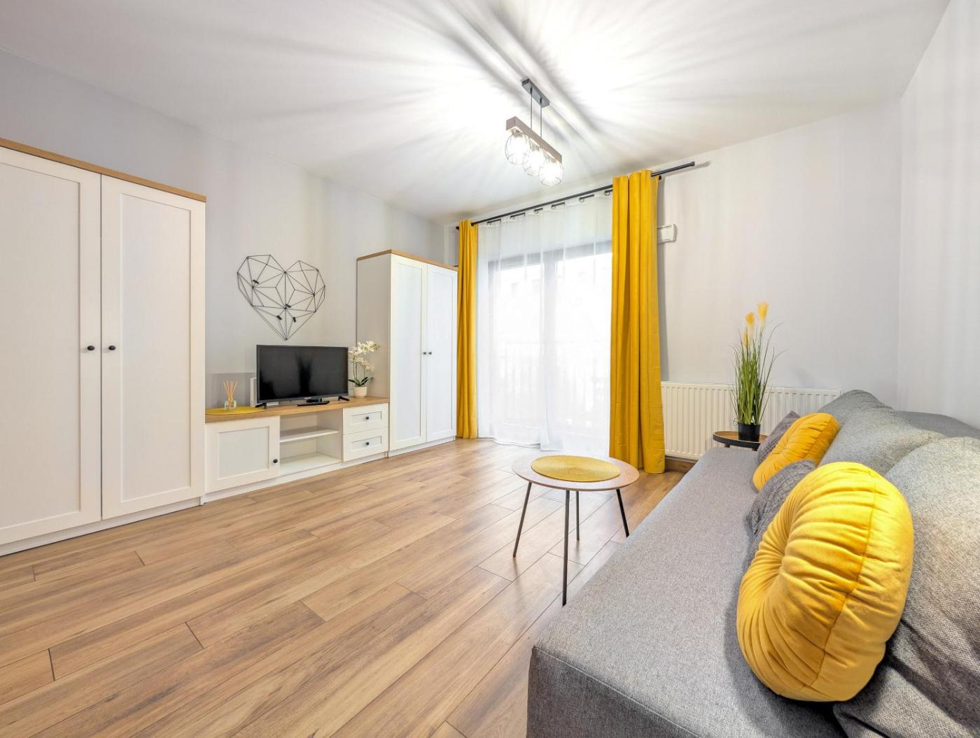 Studio z rozkładaną sofą. Guests will have a special experience as the studio features a sauna. The studio features a private bathroom, a washing machine, a private entrance, as well as a seating area with a flat-screen TV. Guests can make meals in the kitchenette that is equipped with a stovetop, a refrigerator, a dishwasher and kitchenware. The studio provides a tea and coffee maker, a dining area, a wardrobe, a sofa, as well as a TV. The unit offers 1 bed. Studio - 2 osobowy. Powierzchnia pokoju ok.: 30 mkw.
